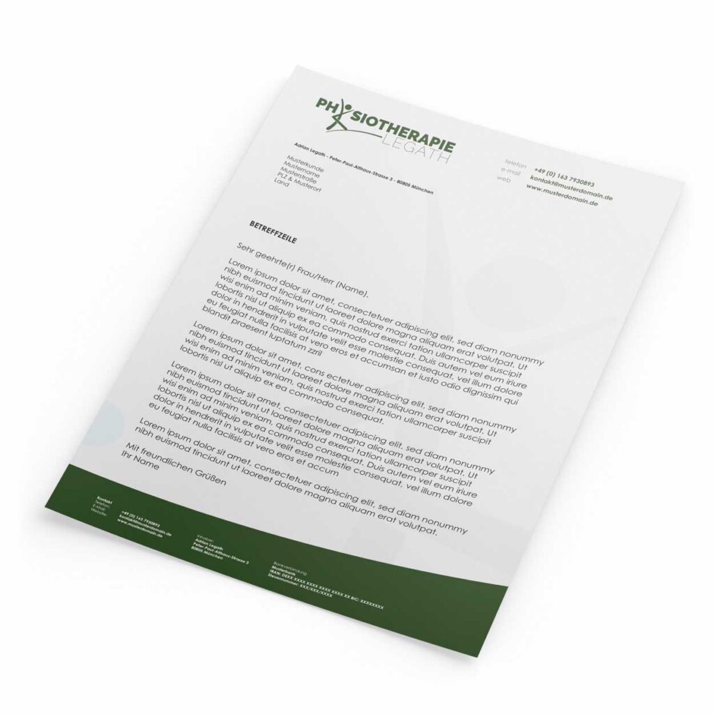 Für unseren Kunden Physio Legath, der 2024 in München gegründet wurde, haben wir ein rundum stimmiges Designpaket entwickelt. Angefangen beim Logodesign über die Visitenkarten bis hin zum Briefpapier – alles aus einem Guss. Zusätzlich haben wir uns um das komplette Print Fulfillment gekümmert: Konzeption und die Gestaltung aller Printmedien lagen in unserer Hand.